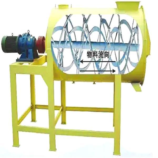 由O型容器、螺带搅拌叶片和传动部件组成,O型长筒体结构保证了被混合物料在筒体内小阻力运动,正反螺带安装在同一水平中心轴上形成一个低运动混合环境,内外螺带反方向汇集,加快了混合速度,提高了混合均匀度。